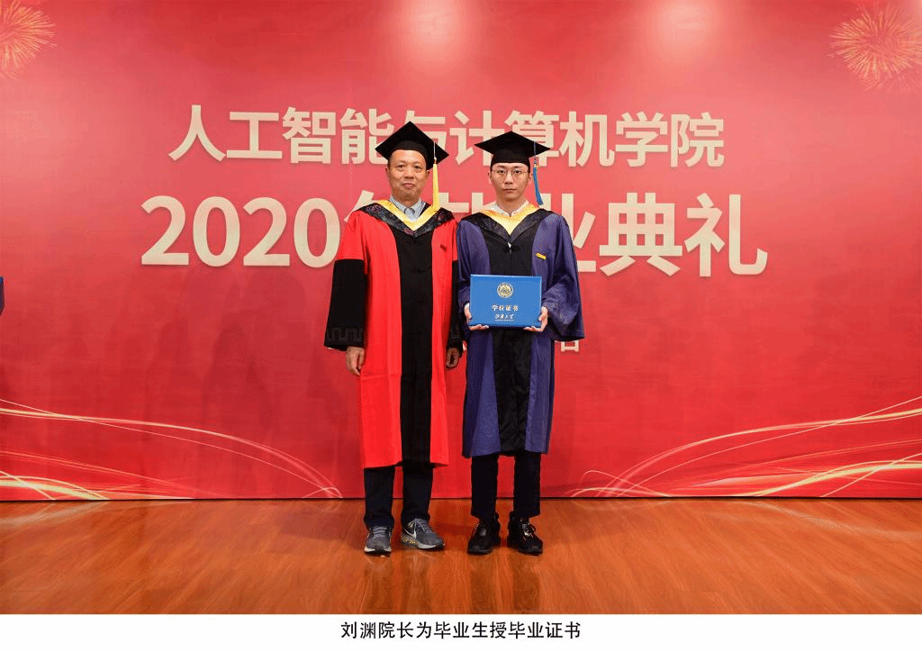 张华书记宣读了校友联络员聘任名单并依次为校友联络员颁发聘书。刘渊院长代表全体教职员工祝贺大家顺利毕业!向辛勤培育毕业生的父母和各位老师致以衷心的感谢!院长以“自信、成长、博爱”三个关键词,寄语全体毕业生要自信自强,用内心的力量,不断挑战自我、超越自我,在这个瞬息万变的信息时代做勇立潮头的开拓者;要在未来生活的纷繁复杂中、在社会的大熔炉中,坚持学习,踏实实践,不断沉淀自我,走向成熟;要用一颗温柔的心去包容世界,感怀前辈们的栉风沐雨,感谢这个催人奋进的时代,感恩给予你帮助的所有人,感恩母校,更要感恩我们伟大的祖国。典礼结束后,刘渊院长为每一位毕业生颁发毕业证书并合影留念。