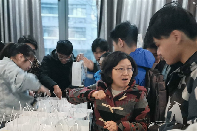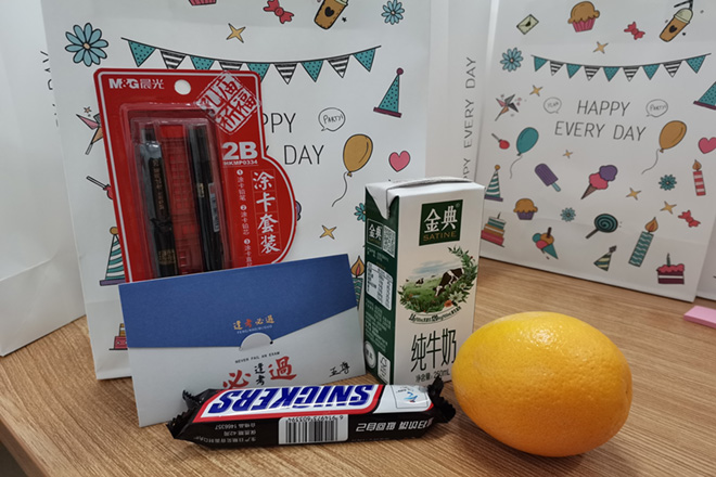 最后,学院老师们将考研加油包发放给了考研学生,表达学院对考研学子们的关怀。加油包中装有橙子:寓意心想事成,牛奶:寓意信心十足,牛气冲天;巧克力:寓意纵享丝滑,下笔如有神;“孔庙祈福”文具:寓意福气满满,以及充满老师心意和祝福的手写加油卡。考研加油包情系考研生,为他们送去了寒冬中的温暖。
