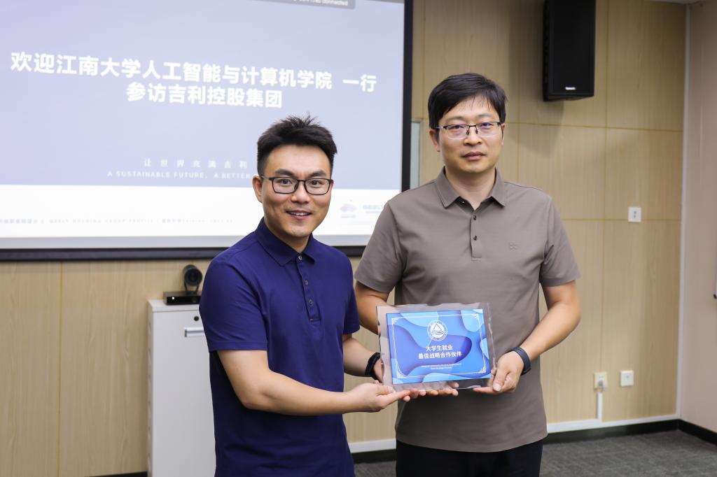 陈琳分别授予吉利汽车和大华股份有限公司“大学生就业最佳战略合作伙伴”荣誉牌。